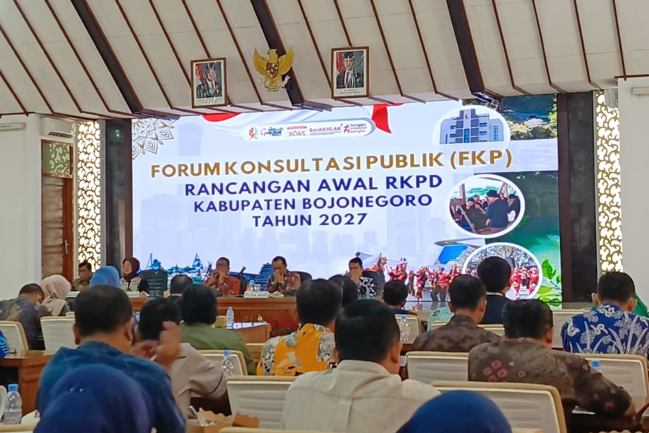 Pemerintah Kabupaten Bojonegoro melangkah cepat dalam memetakan arah pembangunan masa depan. Melalui Forum Konsultasi Publik (FKP) yang digelar di Ruang Angling Dharma pada Jumat (23/01/2026), Pemkab memaparkan Rancangan Awal Rencana Kerja Pemerintah Daerah (RKPD) Tahun 2027 dengan fokus utama pada penguatan layanan dasar dan pengentasan kemiskinan.